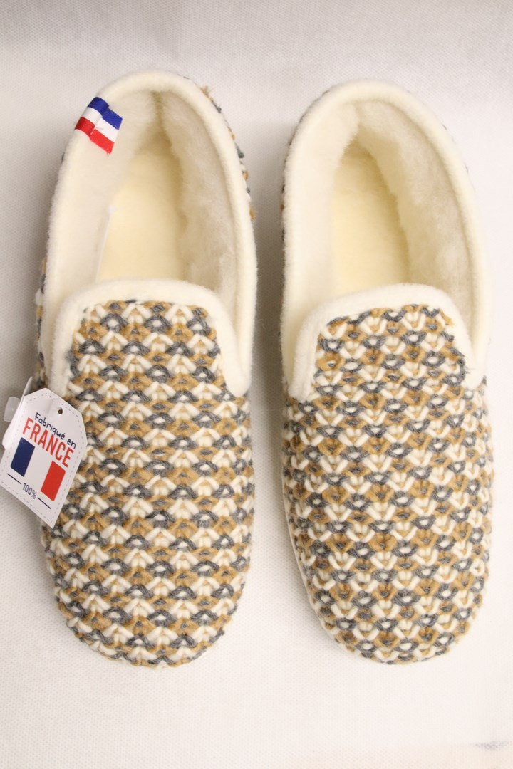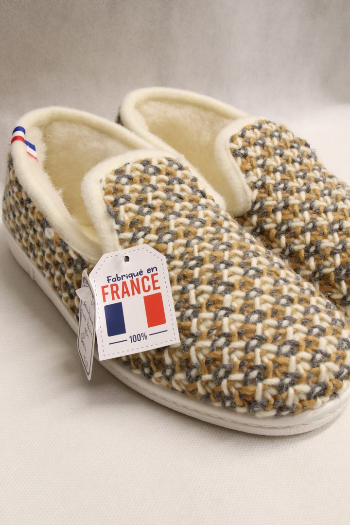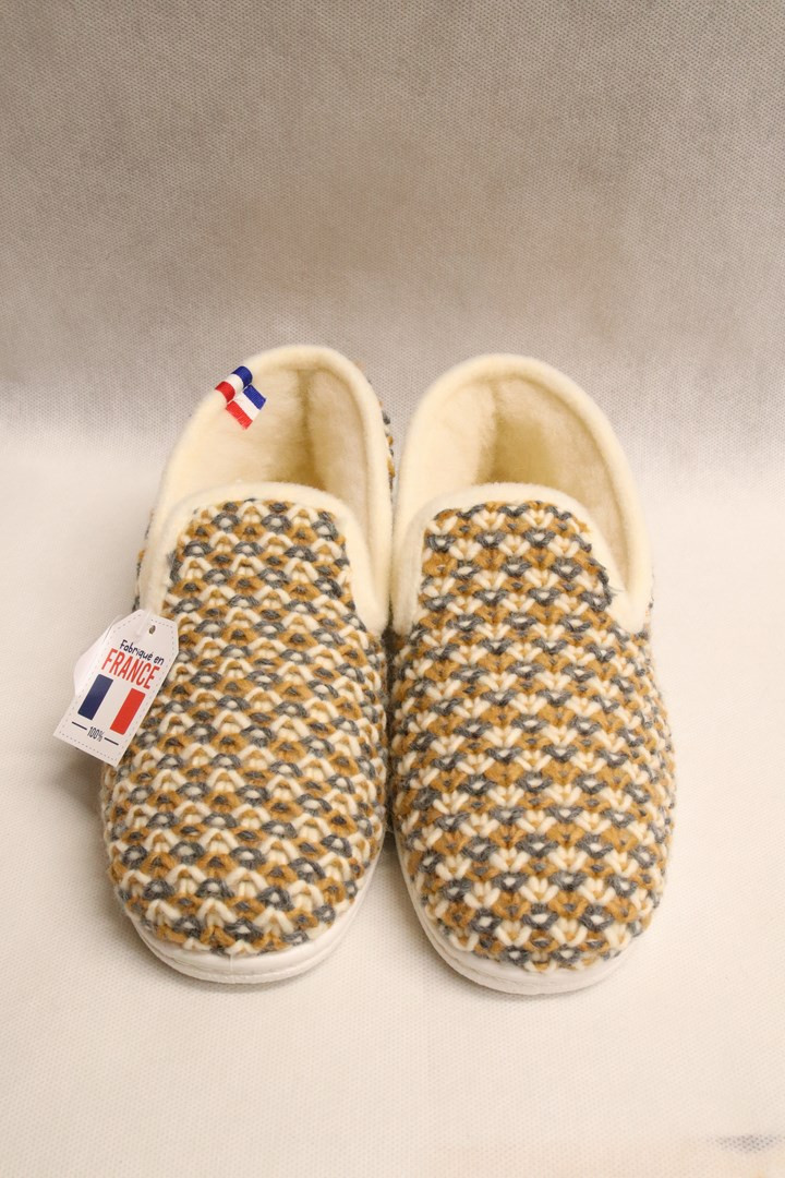 Charentaise pure laine gris/jaune