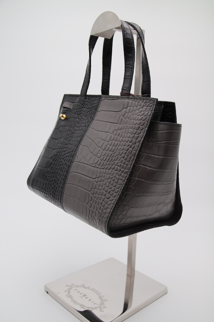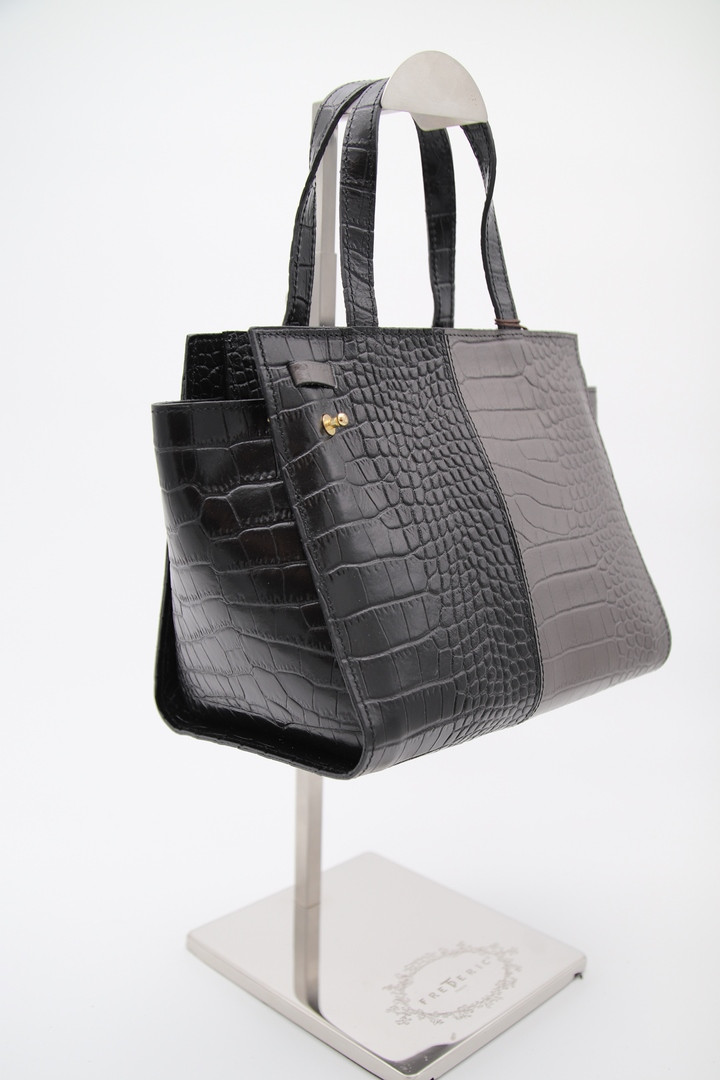 Sac à main en cuir de vachette imprimé croco.
