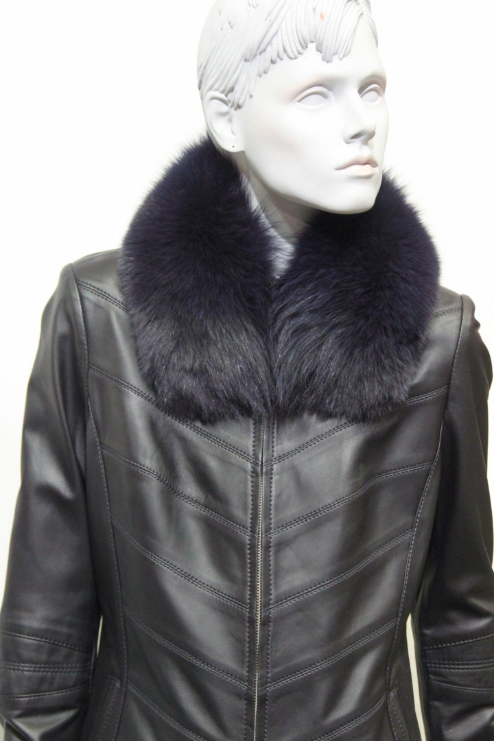 Fourrure renard teint marine.