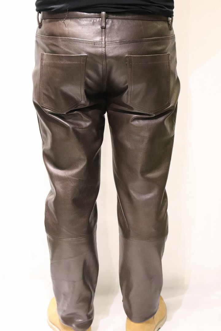 Pantalon cuir homme en vachette souple marron foncé.