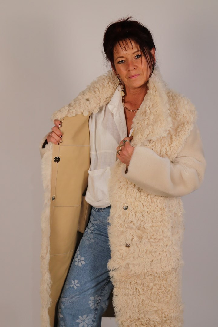 Manteau peau lainée réversible.