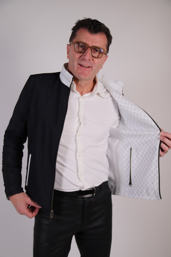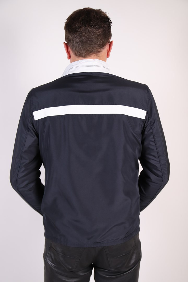 Blouson réversible tissus bleu marine.