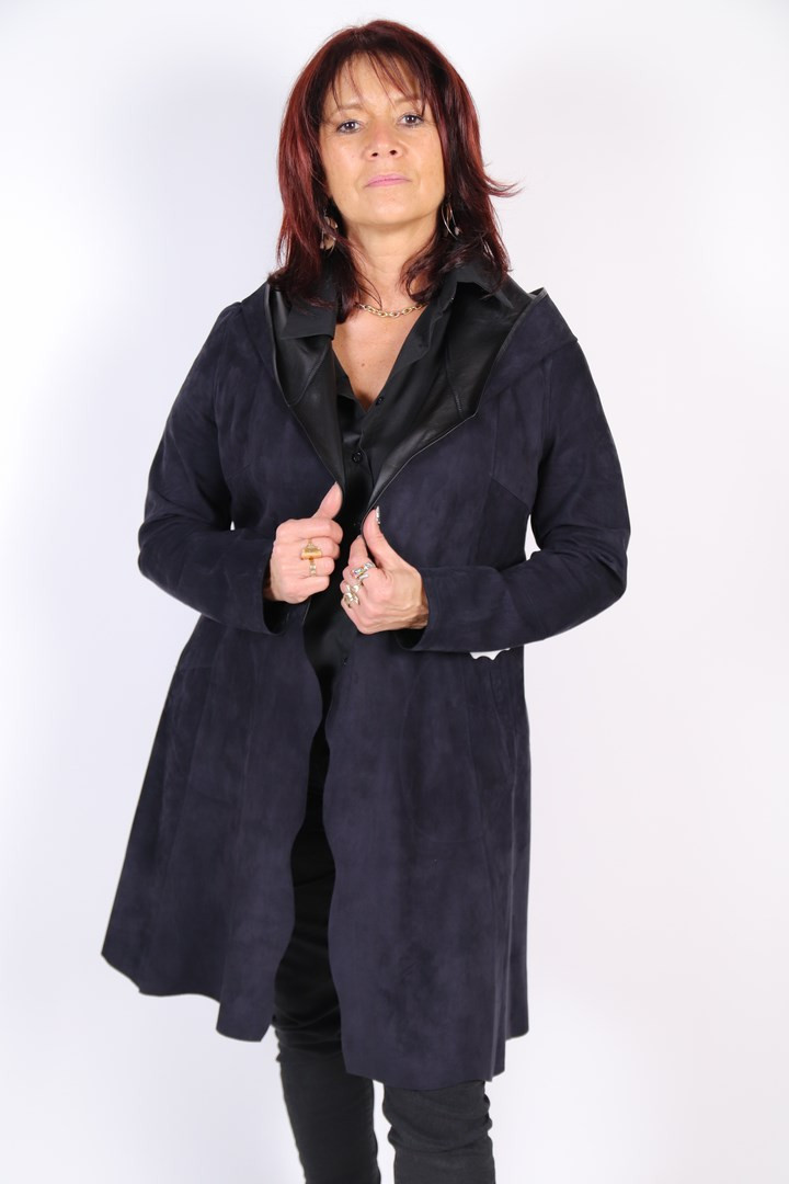 Réversible cuir velours marine.