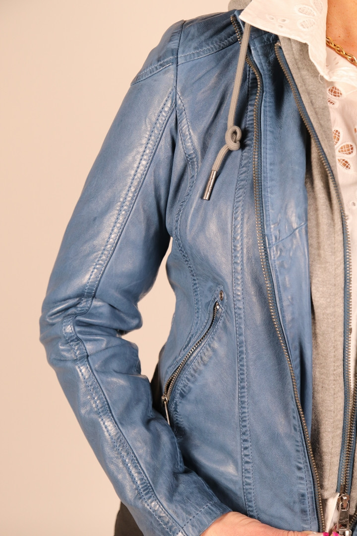 Blouson cuir agneau avec capuche amovible.