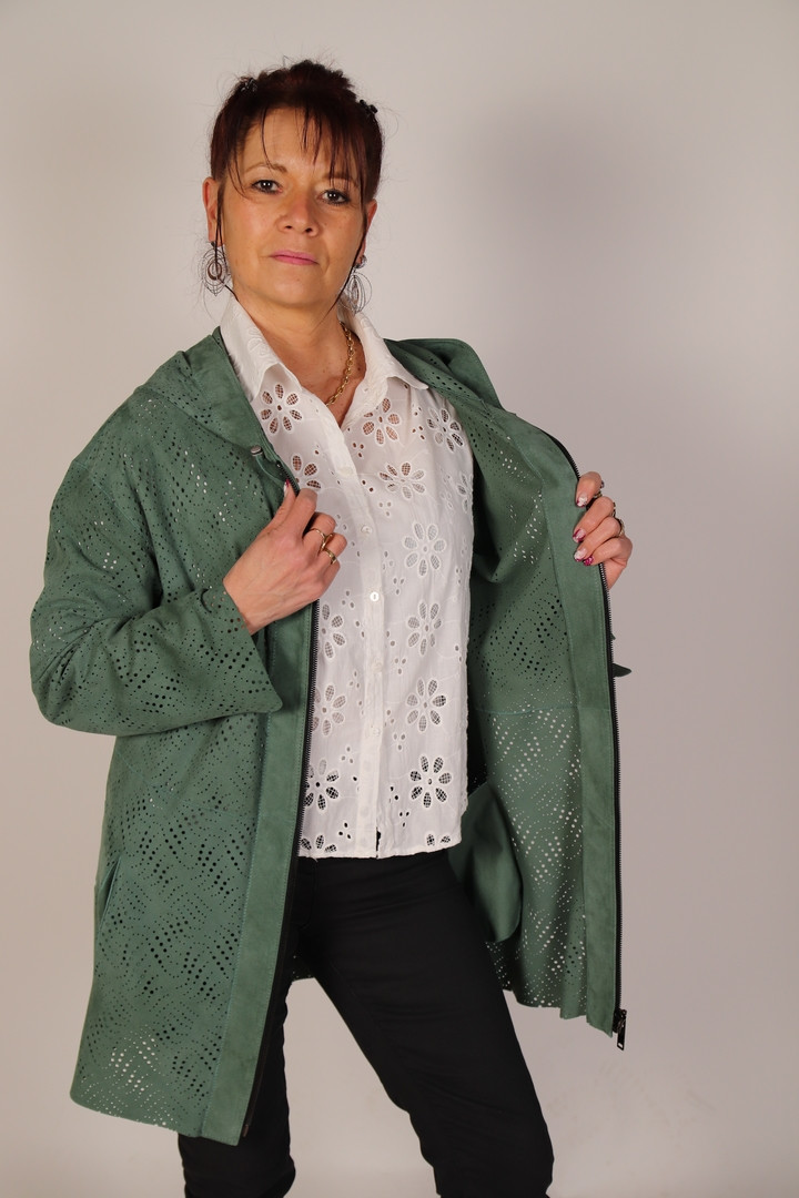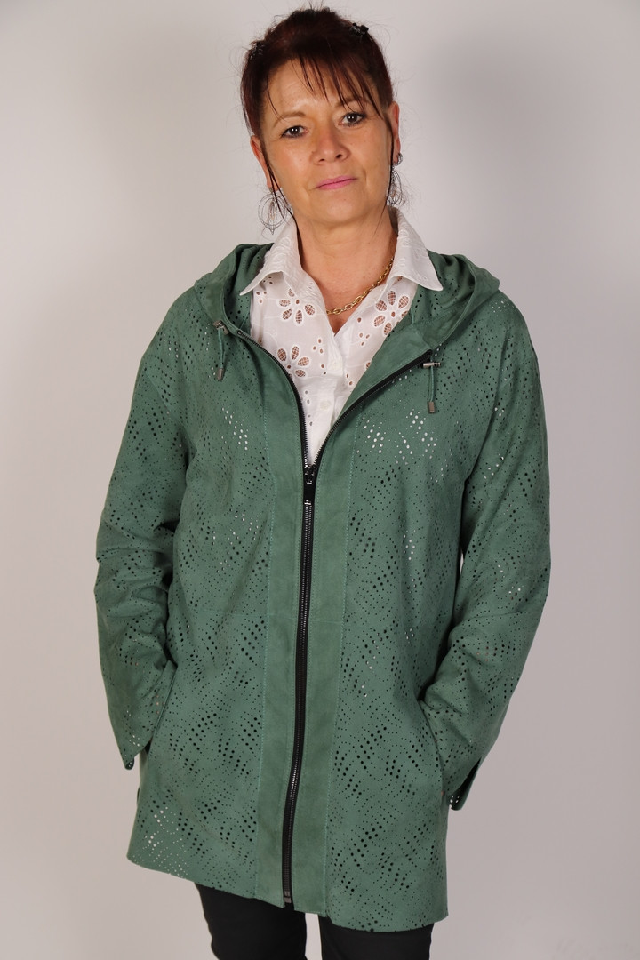 Veste à capuche agneau perforé.
